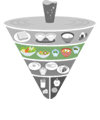 菓子・嗜好飲料は食生活の中で楽しみとしてとらえられ、食事全体の中で適度にとる必要があることから、イラスト上ではコマを回すためのヒモとして表現し、「楽しく適度に」というメッセージがついています。1日200kcal程度を目安にしてください。